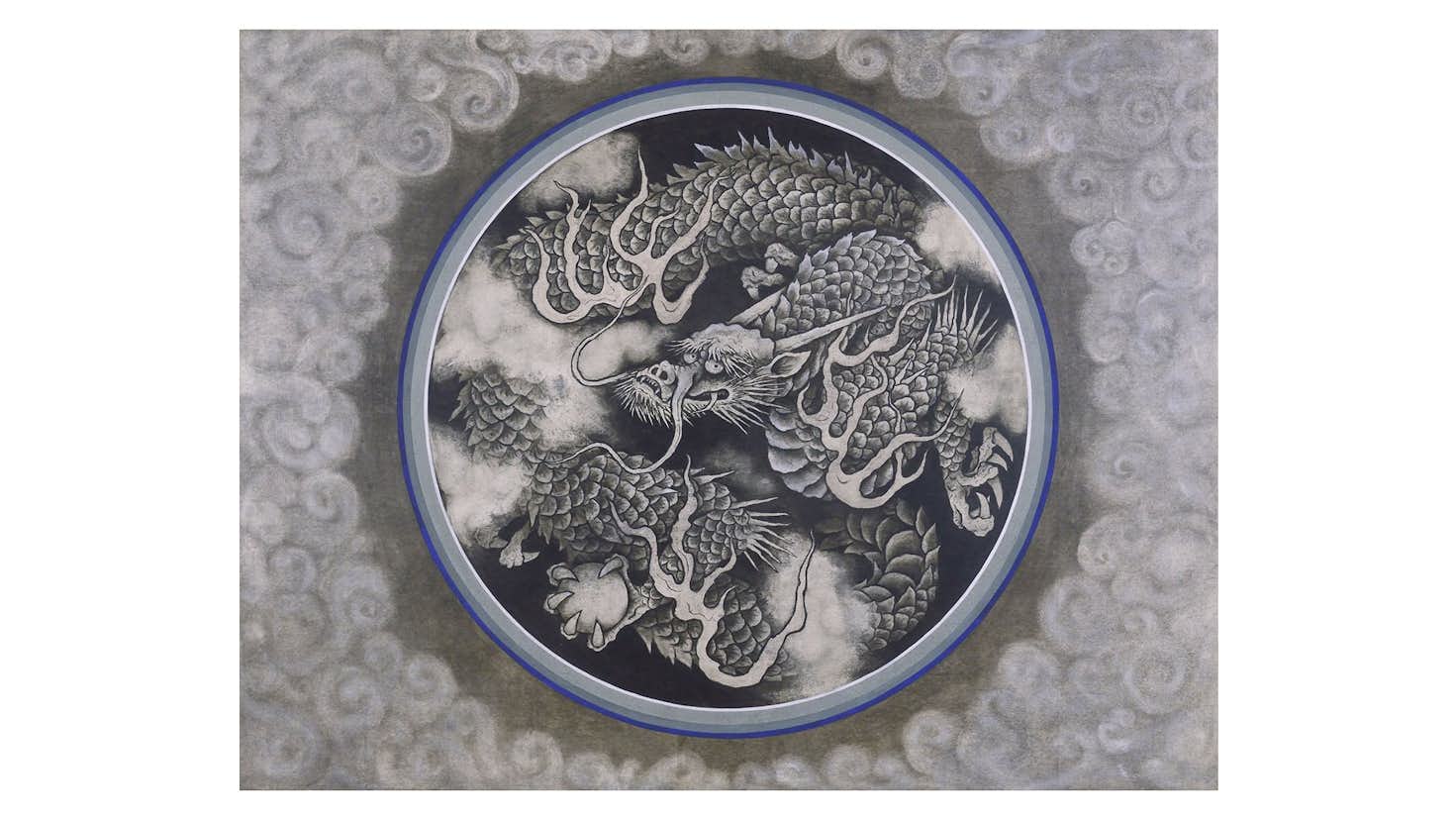 江戸時代前期に活躍した狩野探雪(かのうたんせつ、1655〜1714)の屏風《草花図》や、牛田雞村(うしだけいそん、1890〜1976)の修復された屏風《青蘆(せいろ)》、小泉淳作(1924〜2012)による建長寺の天井画《雲龍図》の下図などだ。