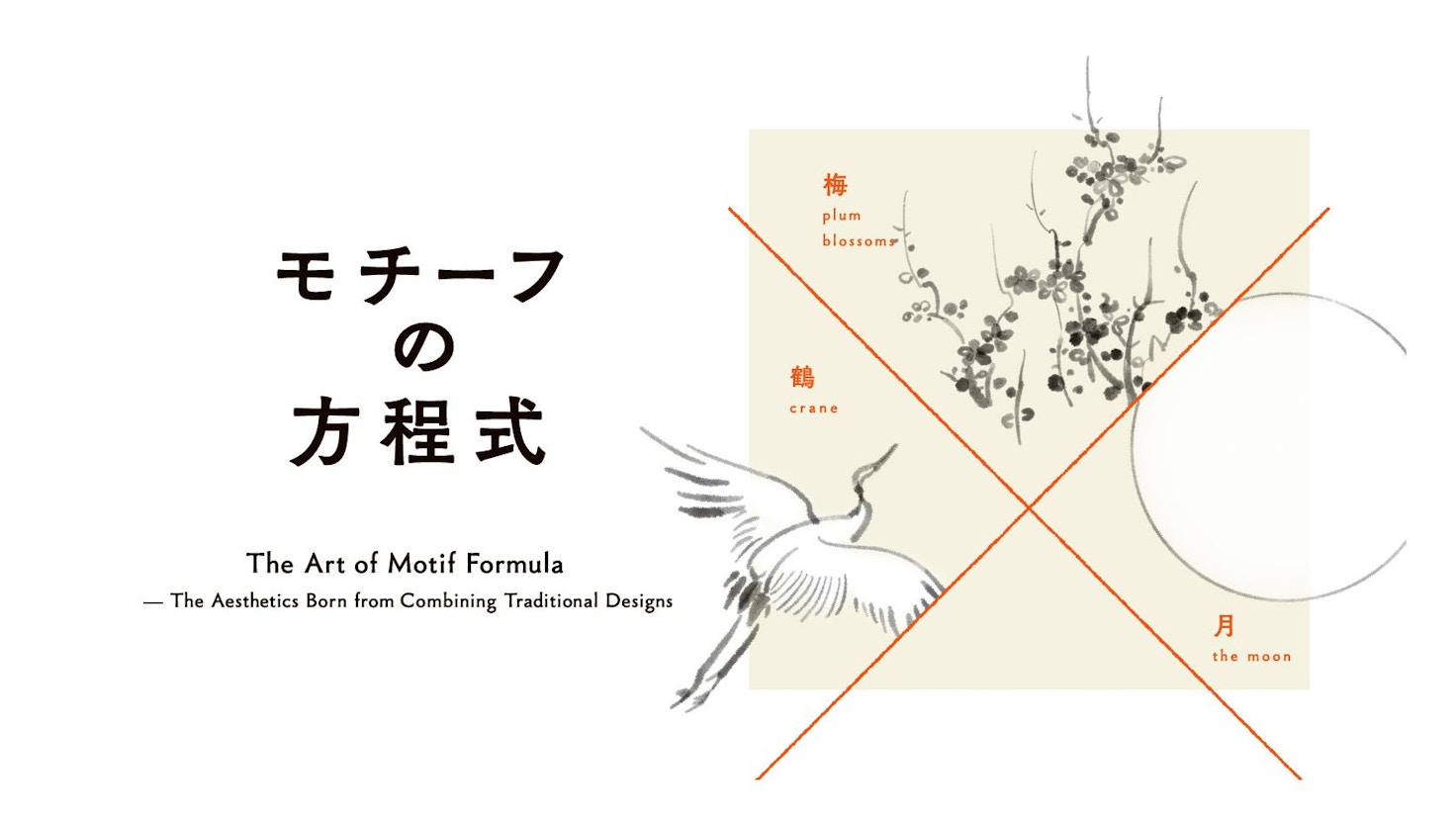 今回の展示では、千總の所蔵品の中から「梅」「鶴」「月」が登場する作品を取り上げる。「松竹梅」や「波に鶴」など、定着したモチーフの組み合わせではなく、モチーフを一度分解し、再び組み合わせる過程に注目することで、それぞれの関係性が生み出すイメージを通して見る構成となっている。