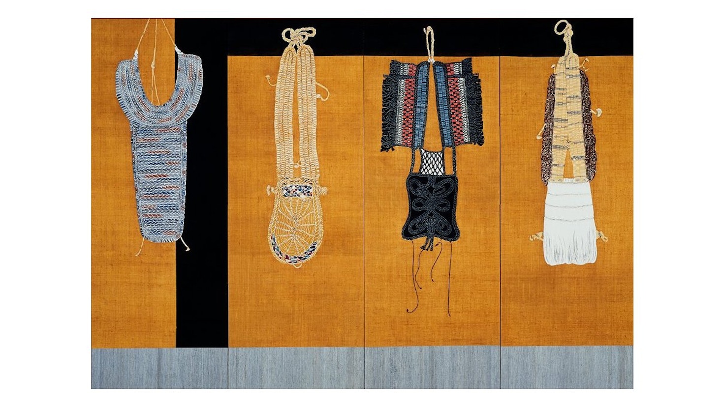 第1民芸館「芹沢銈介の仕事」では、2025年に生誕130年を迎えた芹沢銈介の作品を、豊田市民芸館の館蔵品から厳選して紹介。染色作品を中心に、ガラス絵、絵本、装幀など多様な仕事を通して、その制作の幅と歩みを示す。