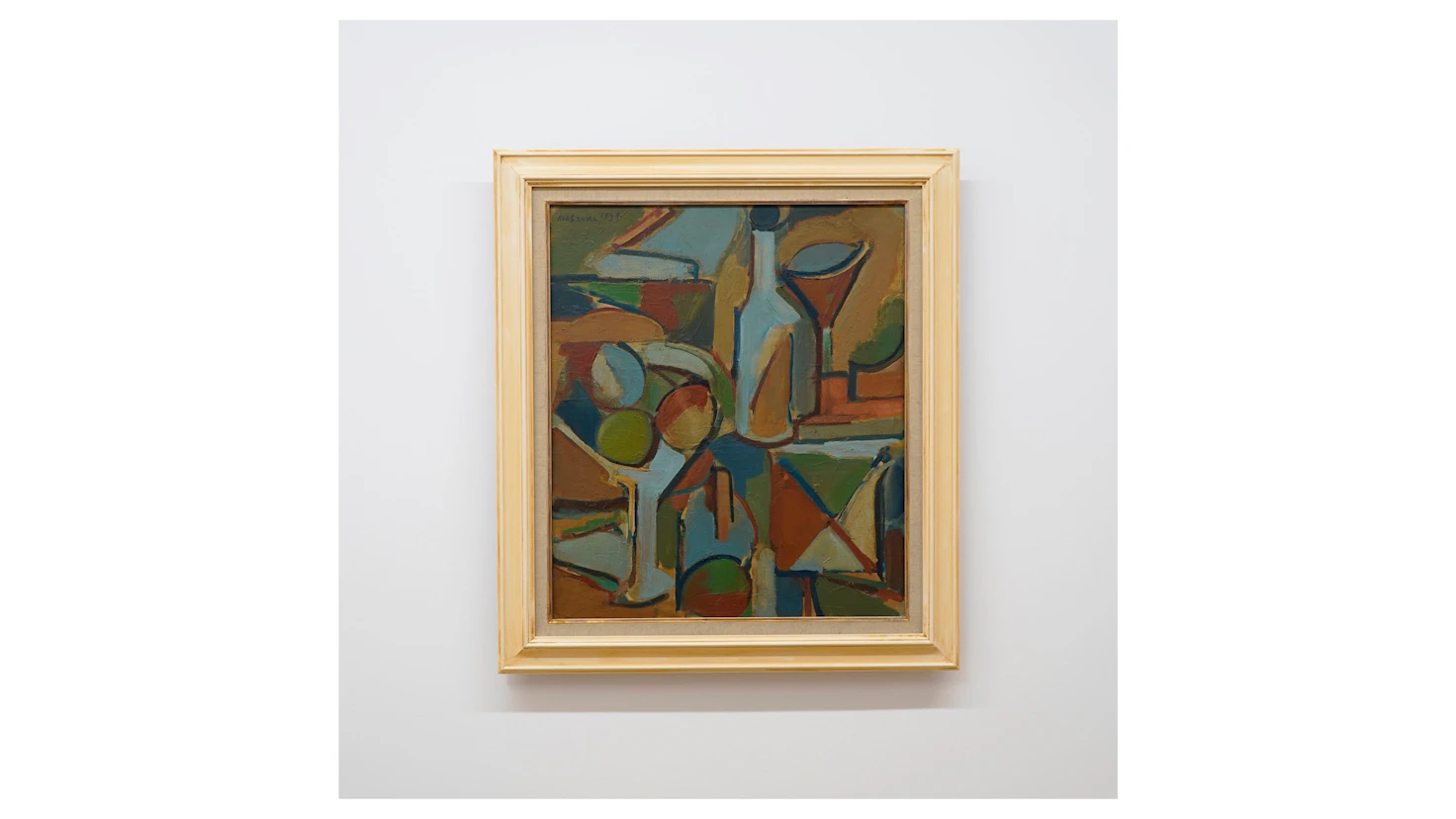展示室では、絵画の解体が進み具象的な形態を失う直前の山田正亮による静物画、茶色や黄土色と黒を組み合わせた抽象表現と並行して赤い輪郭線のある自然を描いた山口長男の初期の風景画を紹介する。