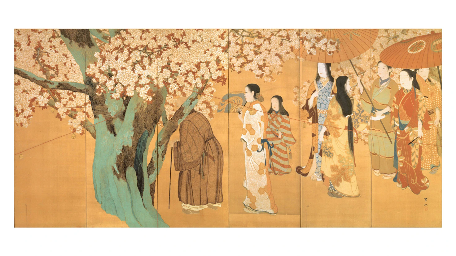 今村紫紅(1880〜1916)は、明治の末から大正初期に活躍した画家。平安時代から続く伝統的なやまと絵を学び、歴史画において高い技量を示したのち、日本画の革新を志す。琳派の俵屋宗達などの絵に刺激を受け、南画や西欧の印象派などの表現も取り入れて、風景画に個性を発揮した。