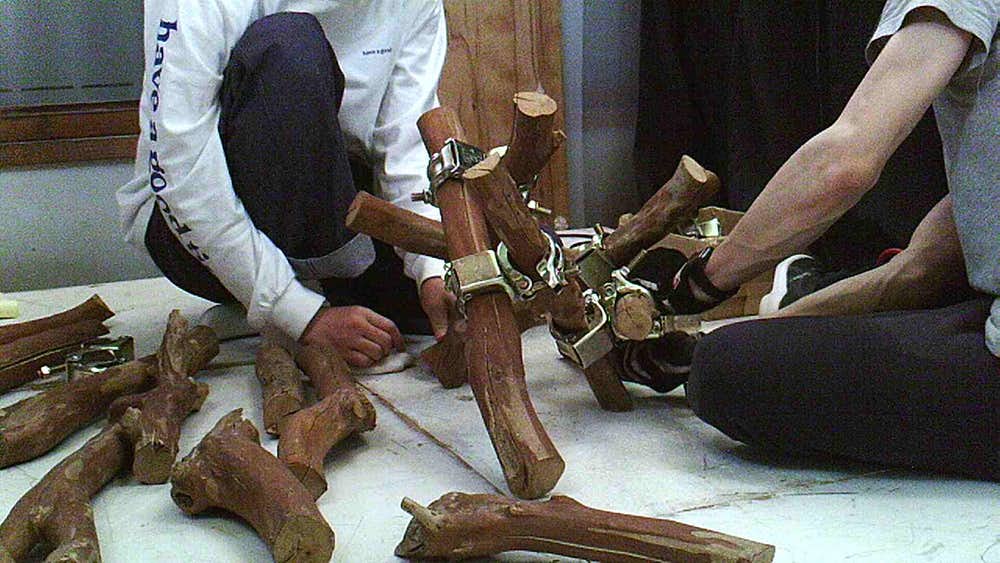本展では、単管パイプを連結する行為を起点に、その行為に関わる人々との関係から生まれる規則性や正当性をテーマとして構成。完成した作品を展示するのではなく、過程を繰り返す動作の中から見えてくる何かを探る。