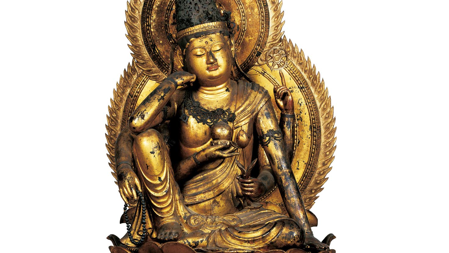 真言密教の拠点として古くから歴史の表舞台で重要な役割を果たしてきた名刹・醍醐寺。貞観16年(874)、空海直系の弟子・理源大師聖宝によって開かれ、真言密教の中でも加持祈禱や修法などの実践を重視する寺として発展したことで、その本尊となる彫刻や絵画、修法で用いる仏具など本格的な密教美術の数々が伝わっている。また、修法の方法や本尊の図像に関する記録、各時代の為政者からの帰依を表す文書などは7万点近くにおよび、国宝『醍醐寺文書聖教』には、その繁栄の歴史が記されている。