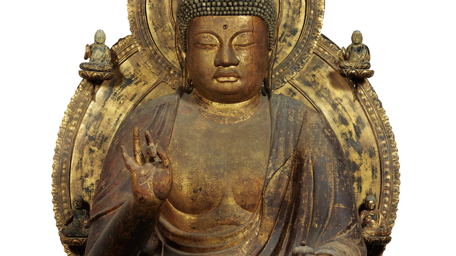 本展では、国宝約35件、重要文化財約50件を含む選りすぐりの寺宝約100件を一挙に公開。かつて上醍醐に鎮座していた《薬師如来坐像および両脇侍像》をはじめ、《如意輪観音坐像》《五大明王像》など醍醐寺の信仰を象徴し、平安彫刻の白眉に数えられる仏像や仏画を中心に、普段は公開されない貴重な史料・書跡を通じて、平安時代から近世にいたる醍醐寺の変遷をたどる。