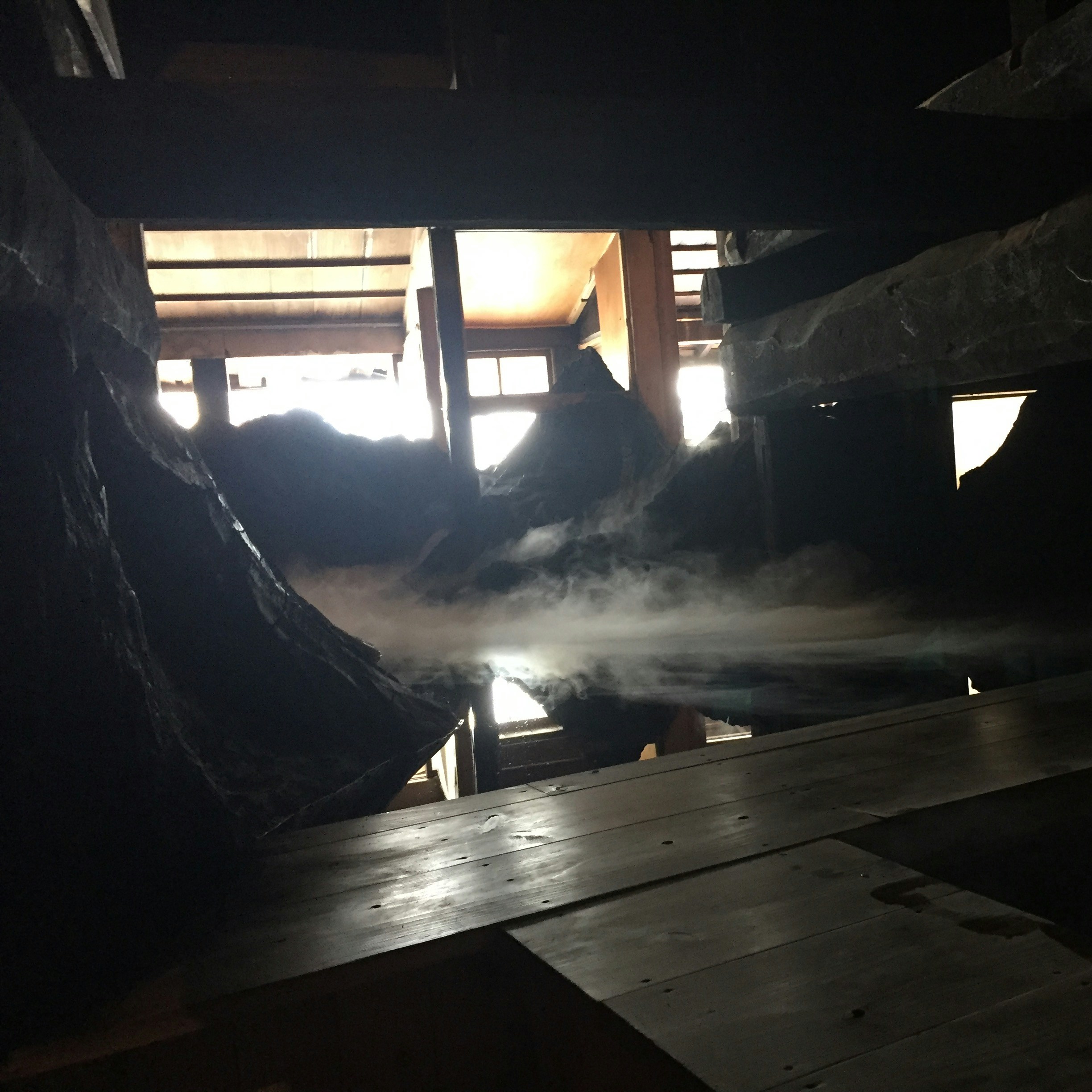 そんな場で彼らが行った最たることは、新しい寺「密嚴堂」をつくること。ちょうど泉町で寺をつくろうと僧侶になる修行を行っていた男性に出会い、その美術を手がけることになり、男性が所有していた古民家に作品を展開した。必然的な偶然をも引き寄せ、強力なドラマツルギーで観客を引き込む濃密な劇となった。