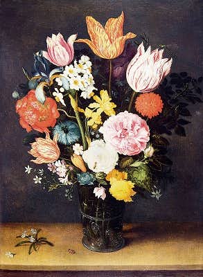 ヤン・ブリューゲル1世、ヤン・ブリューゲル2世 机上の花瓶に入ったチューリップと薔薇 1615-20頃 Private Collection