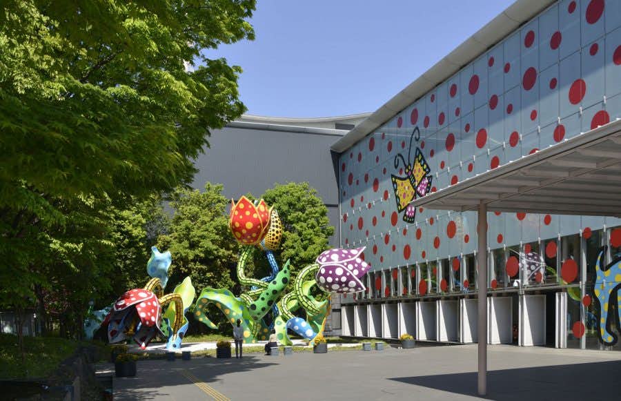 (左から)《幻の華》《松本から未来へ》 松本市美術館蔵 ©YAYOI KUSAMA