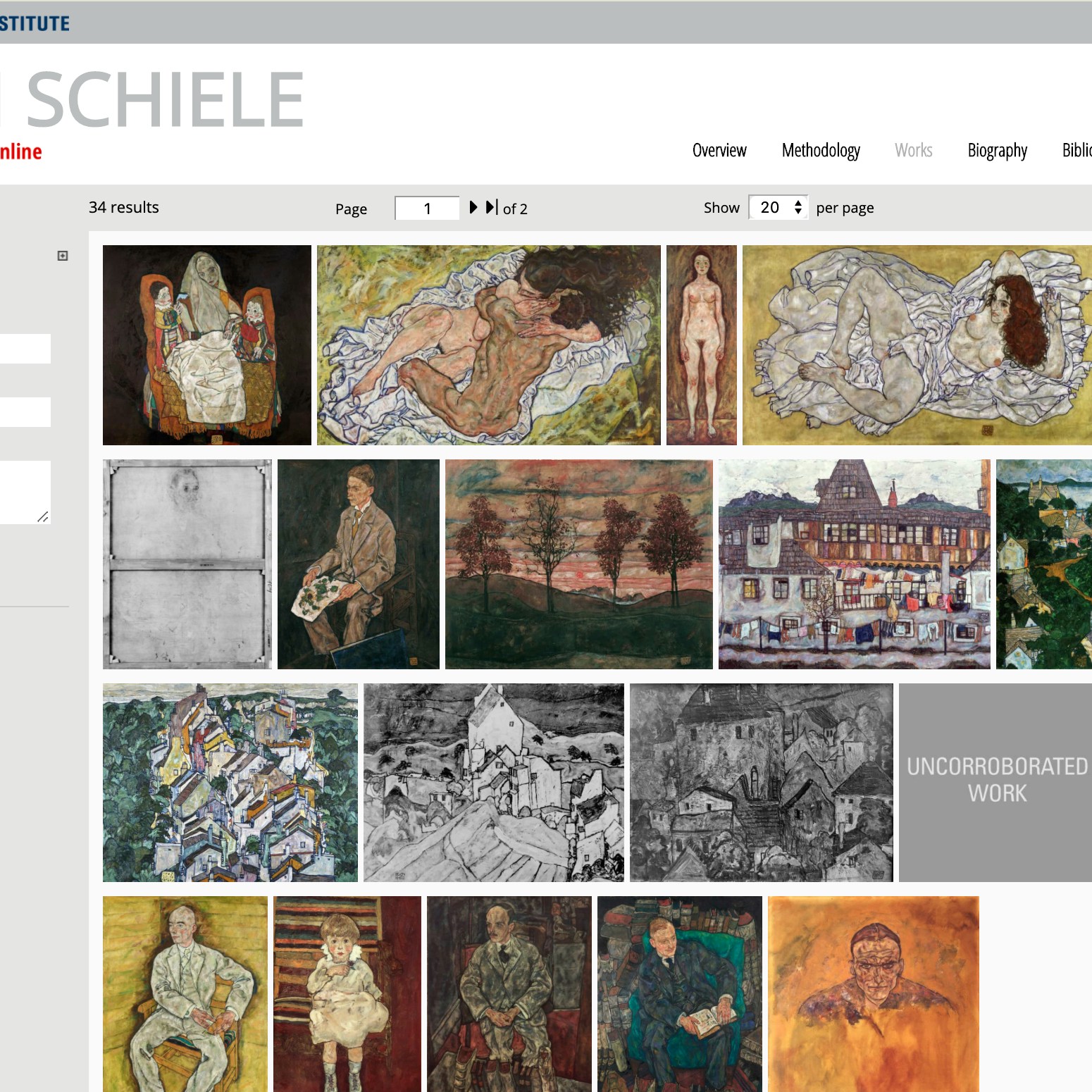 同サイトは、シーレのもっとも新しいカタログレゾネであるジェーン・カリアによる『Egon Schiele: The Complete Works』 (1990に刊行、98年に改訂)をもとにしたものであり、現時点でペインティング、素描、彫刻などを掲載。なかでもペインティング の掲載数は419点にもおよび、シーレの代表作として知られる《ほおずきの実のある自画像》(1912)、《死と乙女》(1915)なども見ることができる。