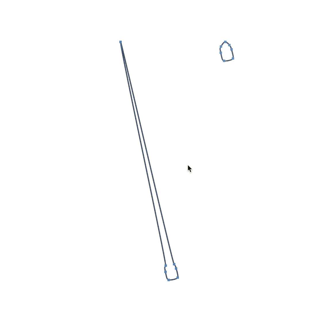 さて、件の〈歯〉はこのダイレクト選択ツールによる編集が加えられたかたち、もしくはそれを模倣したように見えるのだ。元々歯の形をしていたベジェ曲線を上方から下方に、あるいは下方から上方に移動させることで、この長く伸びている、ほぼ平行の、ほぼ直線のような三次曲線が得られる。ダイレクト選択ツールであるオブジェクトを移動させようとその全体をドラッグで選ぶとき、それが大雑把だと、端の一部のアンカーポイントだけ選択しそびれて、移動から「取り残して」しまう(下方向の移動に見えるのはそのためだ)。そうした経験は、Illustratorのユーザに共有される経験だ。