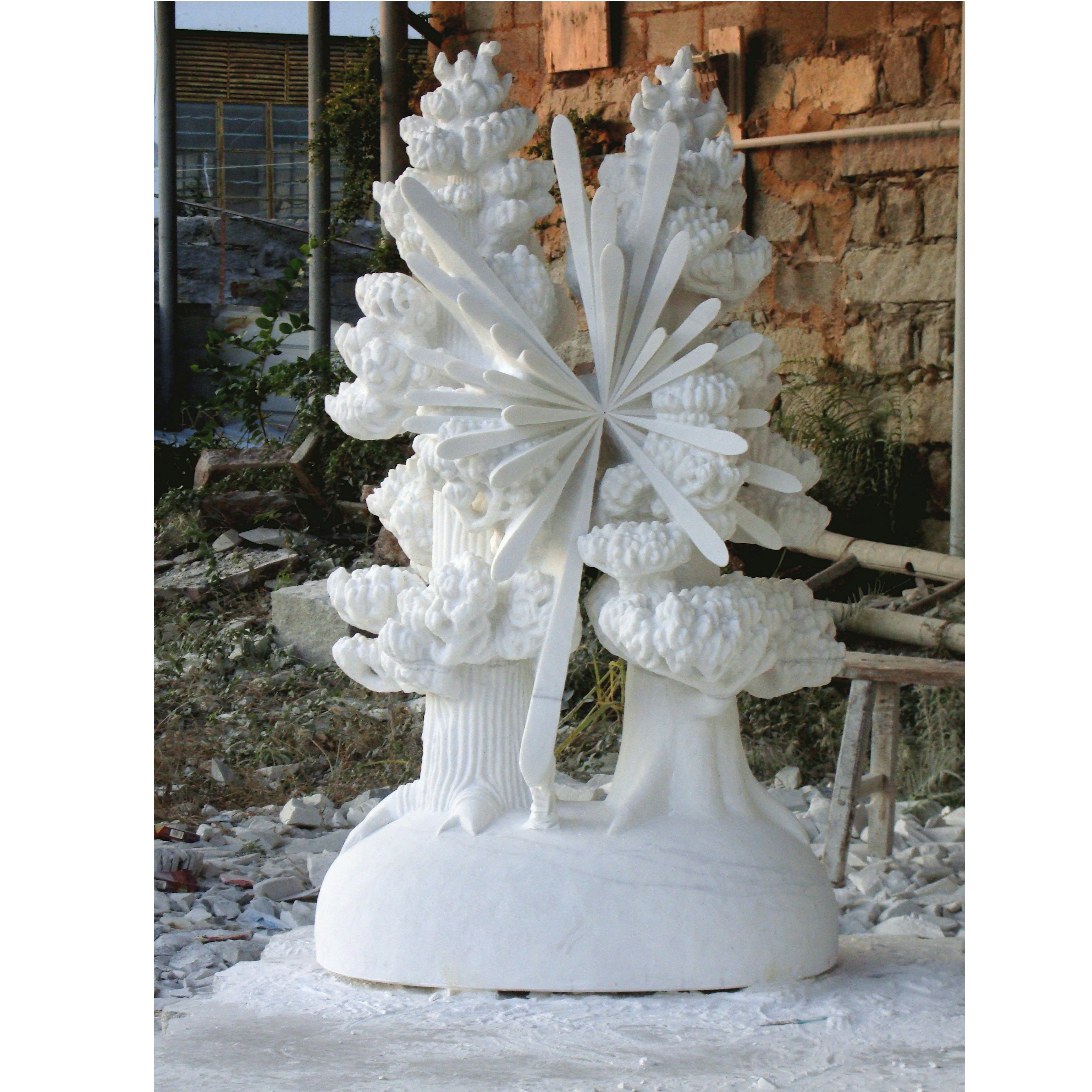 曽根が中国での彫刻制作を始めたとき、そこで試みようとしたのは、言葉を介さずに彫刻を介して協働することだったという。曽根によれば、彫刻をつくるなら言葉を使うよりも実際につくったほうが早いからだ。いまとなっては曽根は片言ながらも早口で閩南(びんなん)訛りの北京語を捲し立てているが、20年前はおそらく幾度とないコミュニケーションの失敗をし続けていただろう。しかしそれでも、石が曽根や職人の目の前にある限り彫刻は「生まれてきてしまう」のである。