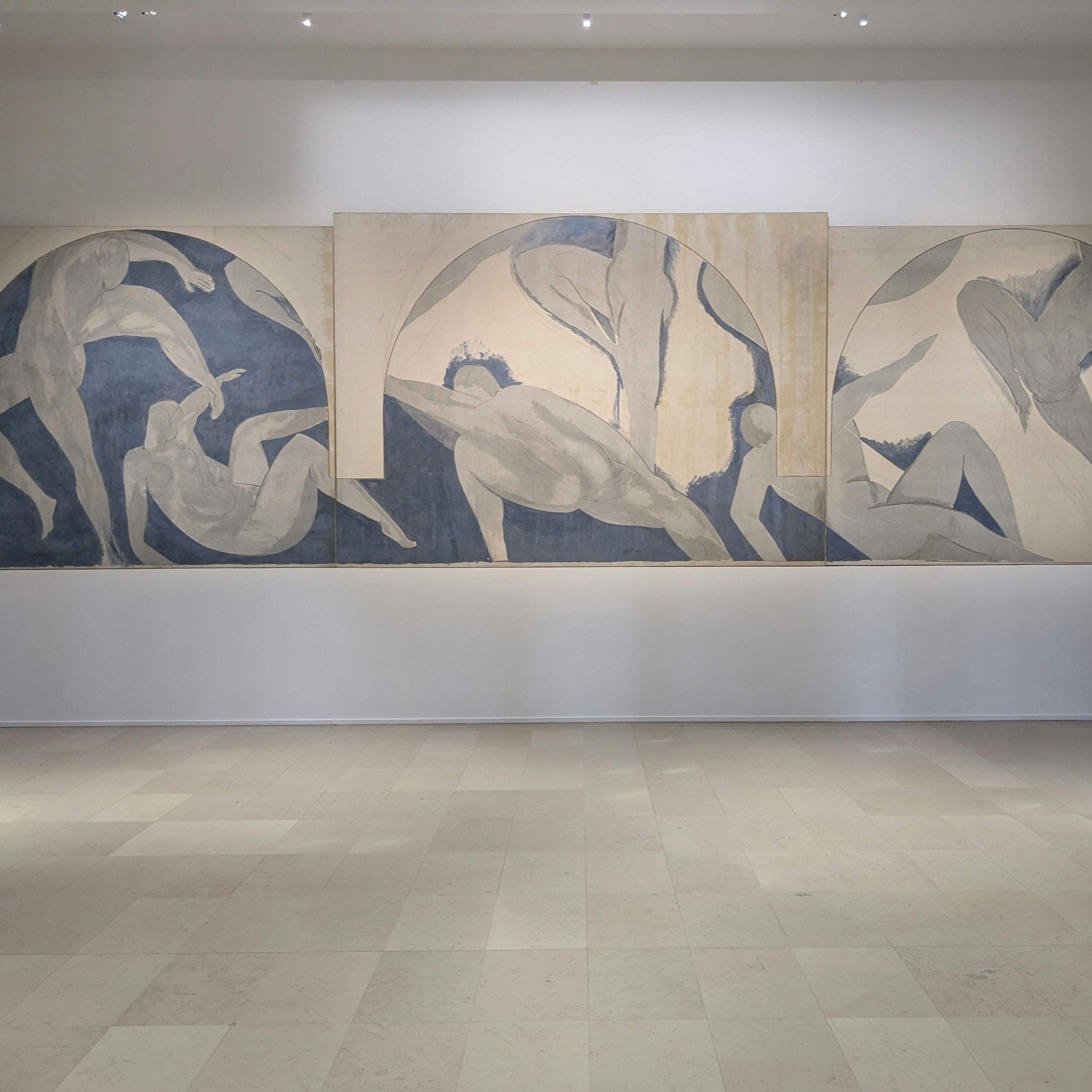 この展覧会では、近代美術館のコレクションのなかから、スポーツを描いた8人のアーティストの作品を選定し、鑑賞コースを造成している。そのなかでも最大の作品は、アンリ・マティスの記念碑的な三連作《ラ・ダンス》(1930-1933)で、6人のダンサーたちの身体が躍動し、生きる喜びが画面にあふれている力強い作品である(*4)。