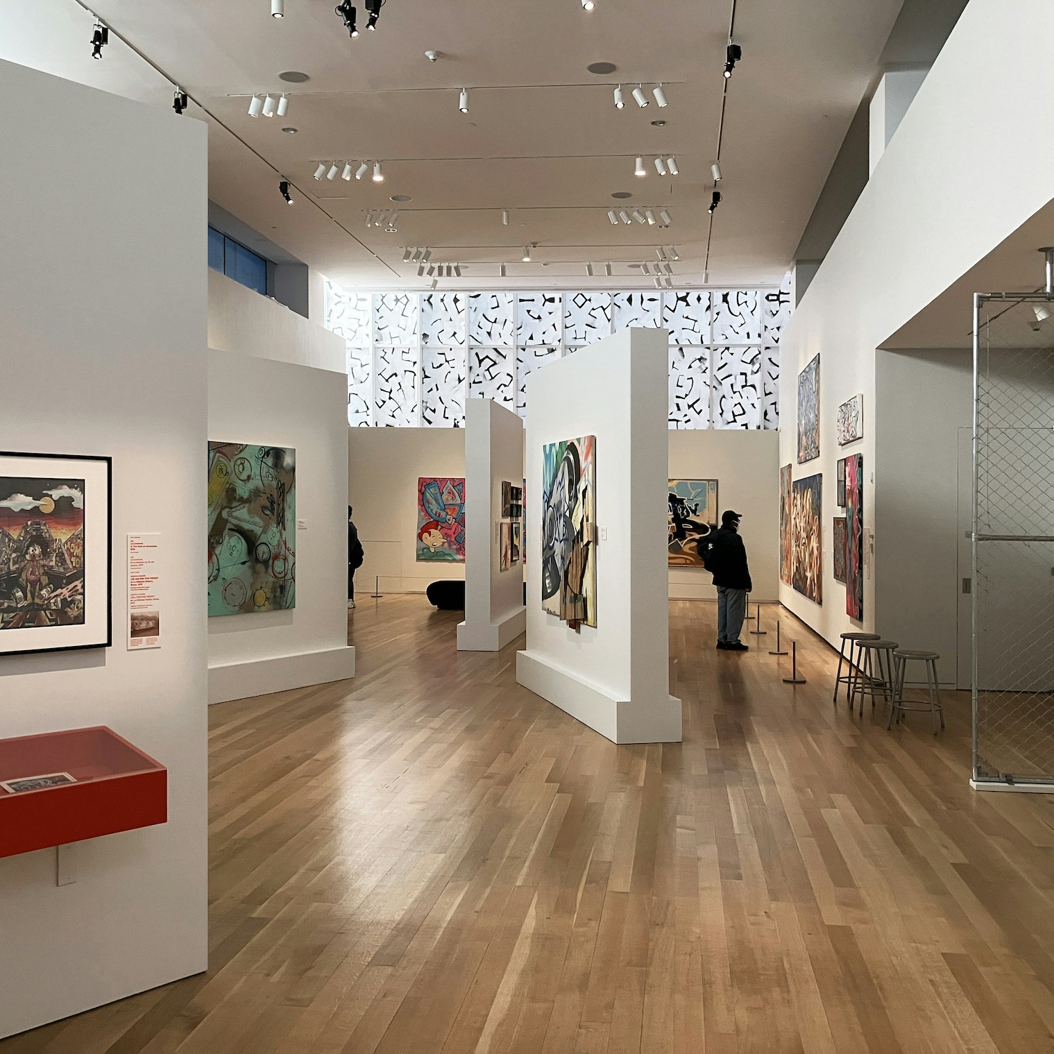 展覧会の前半では、ストリートアーティストによる最初期のギャラリー展示として知られるユナイテッド・グラフィティ・アーティスツ(United Graffiti Artists、UGA)のグループ展(1975年)のカタログを筆頭に、ストリートアートという分野がその最初期から、路上と平行してスタジオやギャラリーといった空間でも展開されてきたことを実証する豊富な資料を目にすることができる。会場を進むと、クリストファー・DAZE・エリス、SHARP、DELTA2、A-ONE、ドンディ・ホワイトらの貴重なキャンバス作品が壁面に展示されている。とくに視覚美術としてのエアロゾル・ライティングの可能性を模索したアーティストたちである。