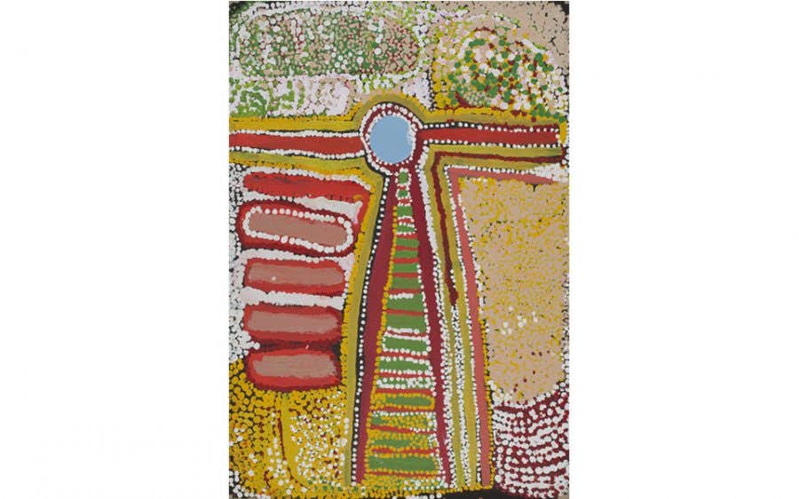 ブーガイ・ワイルター(マトゥミリィ・アーティスト) ミニイプルの粘土の窪地 2007 キャンバスにアクリル絵具 92.5×65cm オーストラリア国立博物館蔵