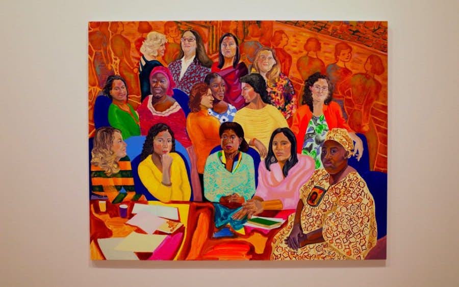 「美術史を参照」する昨今のトレンドをさらに進めた作品。ポップアート、抽象表現主義、フェミニズム・アートなどの複数の表現スタイルが、一画面上に集結して新たな抽象画をつくり上げる