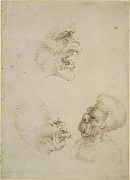 レオナルド・ダ・ヴィンチにもとづく《3つのカリカチュア》 ペン、インク ロンドン、大英博物館蔵 © The Trustees of the British Museum