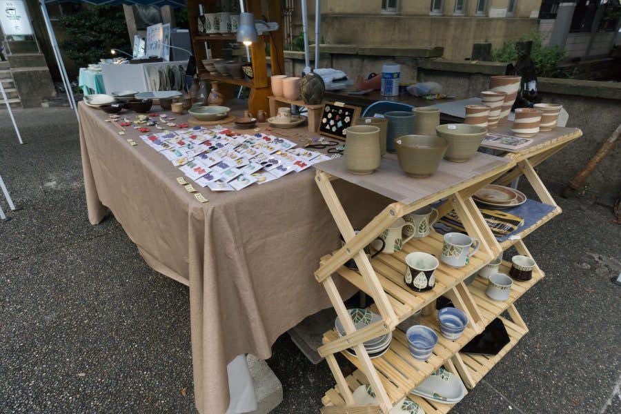 過去に元・立誠小学校で展覧会を企画したことのある京都精華大学が開催した、陶器市の様子