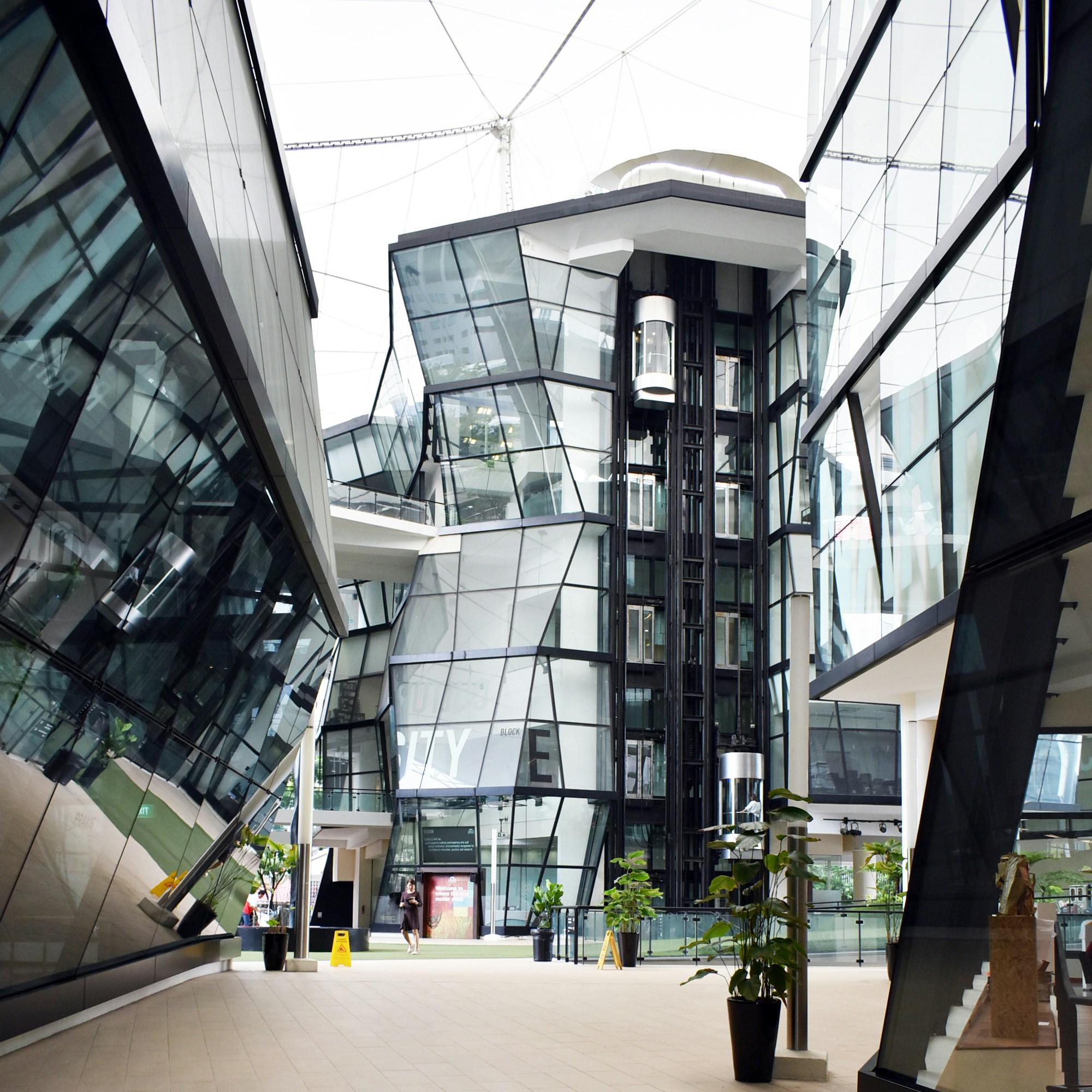 シンガポールの美術大学もぜひ見ておきたい。真っ黒な壁で覆われた敷地内に足を踏み入れると、そこには現代的なガラス張りの建築群。これがシンガポールを代表する美大、ラサール芸術大学だ。7階建ての建物6棟が一つの屋根で覆われた独創的なキャンパスは、シンガポールを拠点とするRSPアーキテクツによる設計。全て傾斜したガラスの壁面はダイナミックで、それだけでも見る価値がある。