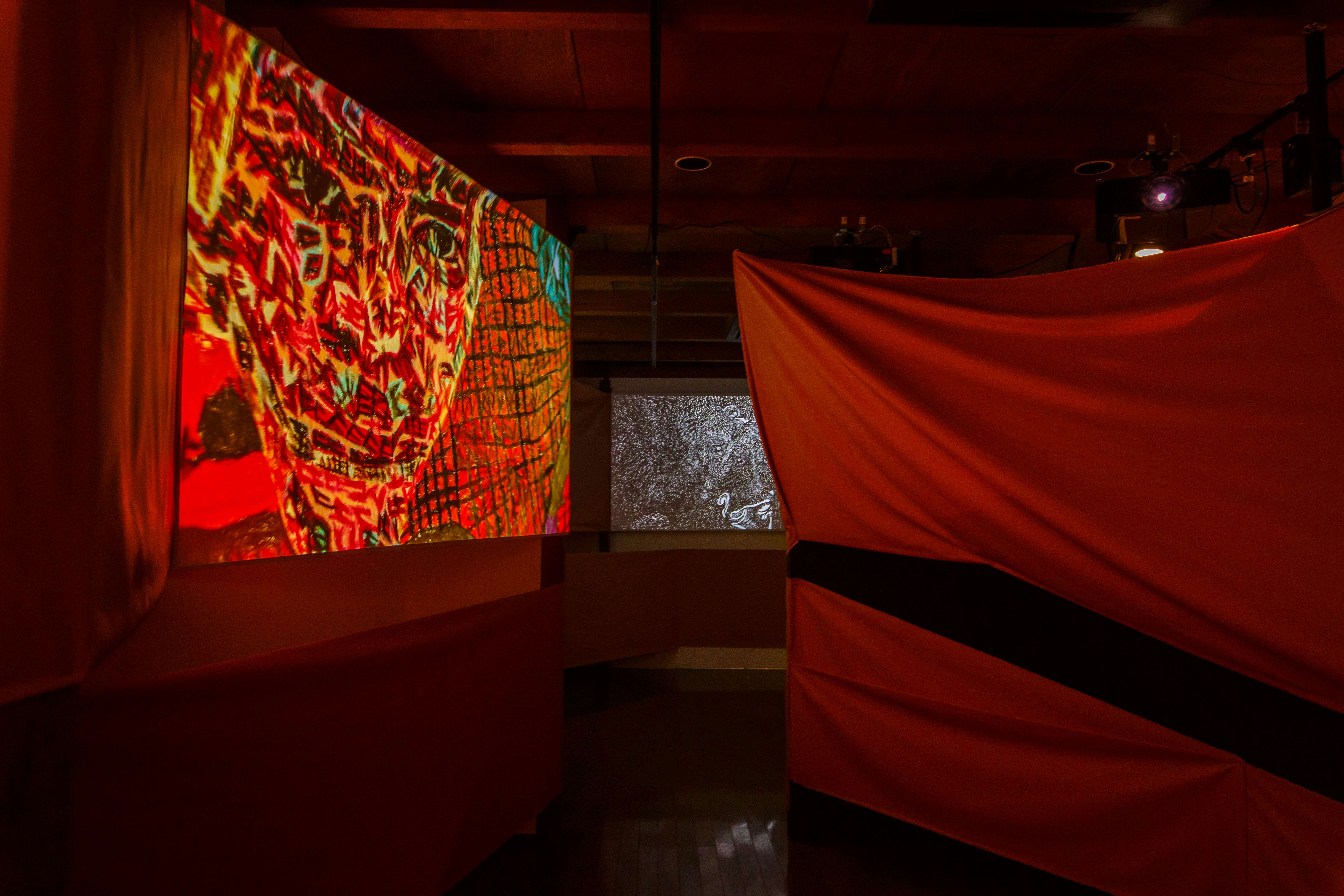 「アール・ブリュット 動く壁画」展(2月3日~3月18日)で展示された木村全彦(1984~)の《駈馬神事》。4Kカメラで撮影された映像で、びっしりと描き込まれた不思議な模様にクローズアップした