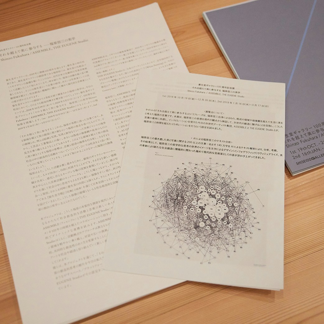 武田砂鉄 今回の展覧会「それを超えて美に参与する 福原信三の美学 Shinzo Fukuhara / ASSEMBLE, THE EUGENE Studio」では、福原信三が書いた145万字のテキストをAIによって解析するという試みが行われましたが、結果的に立ち上がった言葉の特徴はどのようなものだったのでしょうか?