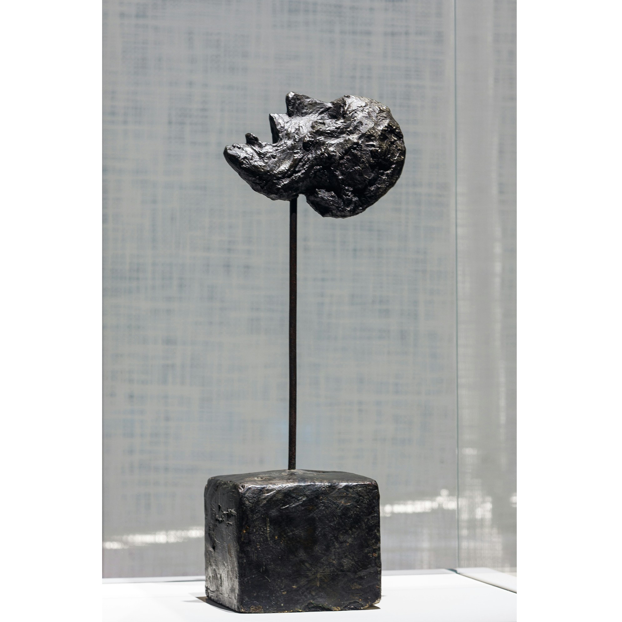 同展に出品されているもっとも初期の作品である《棒に支えられた頭部》(1947)は、ある2人の人物の死の追憶から生まれた。1946年12月、雑誌『ラビリンス』に寄せた「夢・スフィンクス楼・Tの死」という謎めいた文章のなかでジャコメッティは、オランダ人の隣人Tと、かつてチロル地方を共に旅したヴァン・Mの死について克明に描写しているが、死に際して彼らの頭はのけぞり、口が開いていたという点で共通している。そして、Tの死を目の当たりにして抱いた、無に等しいオブジェとなった頭への恐怖を、ジャコメッティは生きている人々に対しても見出す。生きていると同時に死んでいる対象、時間や空間との関係を失い、絶対的な不動性のなかで凍りついた人間や物、それこそ、ジャコメッティが苦心しながらデッサンや彫刻でとらえようとした存在の核心である。