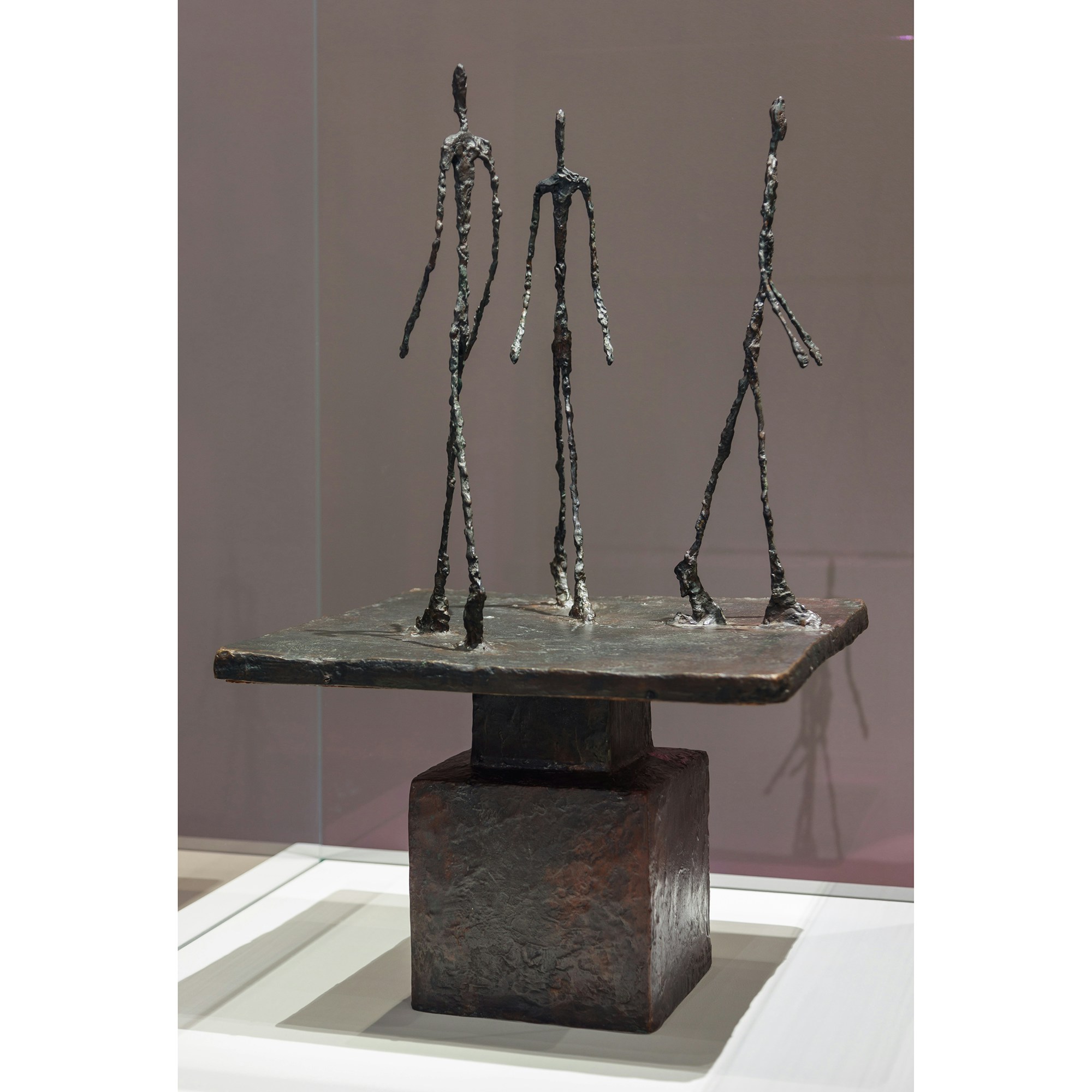 ジャコメッティの代名詞となった細長い人物像は、細部をそぎ落とされて記号化されたアイコンとして、一度目にしたら忘れられない強さを放っている。しかしながら、それは彼の彫刻が持つ豊かさの一面にすぎない。その像の前に立ち、じっくりと向き合えば、手の痕跡である無数の凹凸がその表面に刻まれていることに気づくだろう。指やナイフの跡が残るでこぼことした表面に視線を巡らせていると、ブロンズであるのに、非常に脆い存在を前にしているような感覚に陥る。また、近くに立っていても非常に遠くにあるような錯覚も起きる。峻厳であると同時に儚いジャコメッティの彫像は、作家がとらえようとした人間存在そのものを反映しているかのようだ。