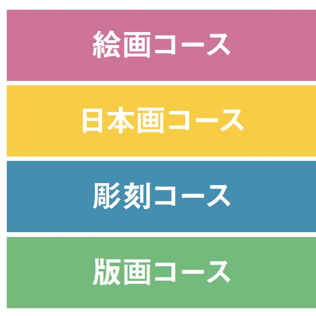 文化専門課程は入学時に4つの専門コースと、「美術表現科」「造形表現科」「表現研究科」の3つの学科から1つずつ選択する。「美術表現科」は美術を初めて学ぶ人や基礎を学び直したい人、「造形表現科」はすでに美術を学んだことのある人が対象。自らの表現をさらに探究したい場合は「表現研究科」だ。基本は月曜から木曜の週4日通学制だが、金曜と土曜に通える「美術専科」もあり、自身のライフスタイルに合わせて選択できる。