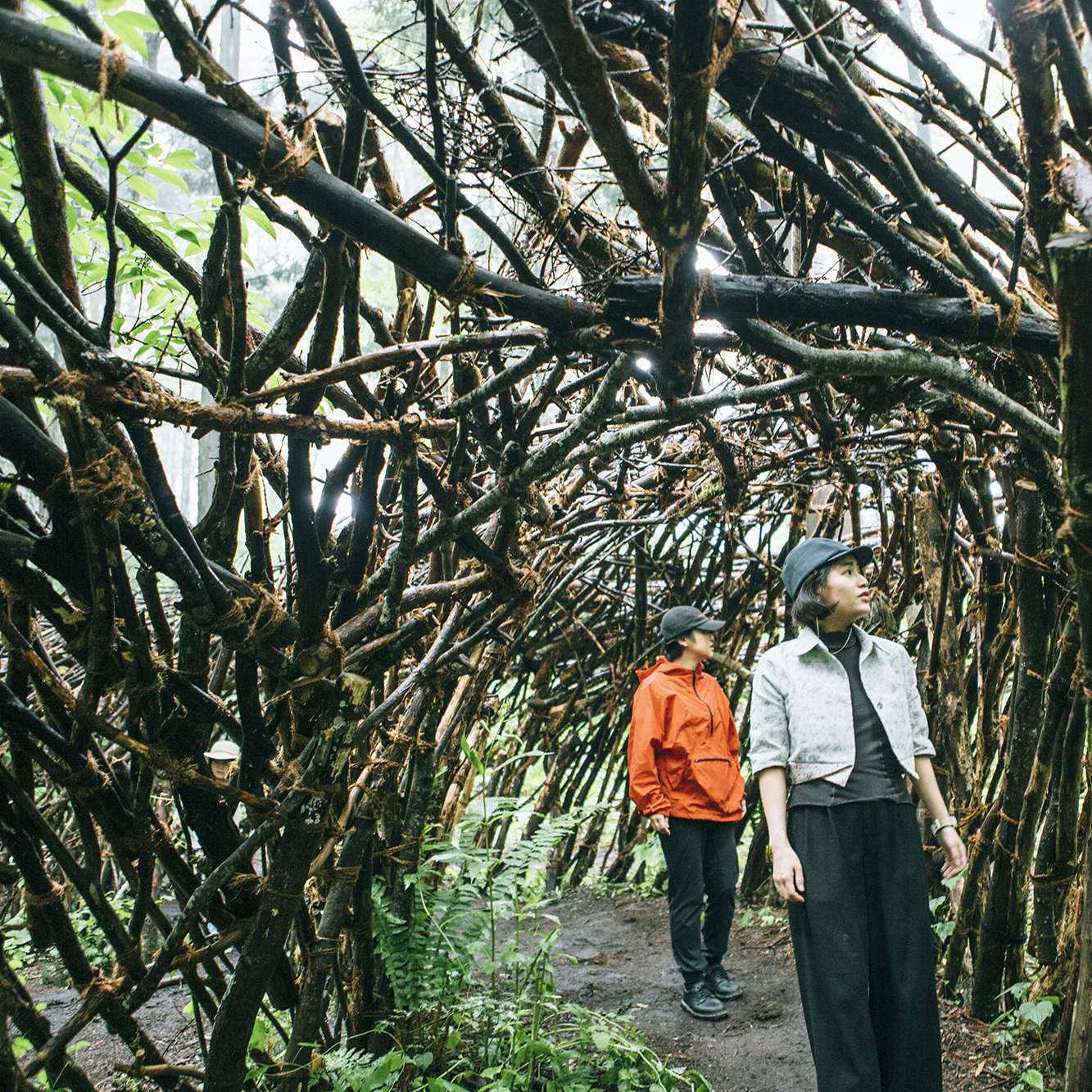 朝食後、仕事で先に出なくてはならない酒井さんを見送り、2日目のアート散策へ。作品のある場所を目指しながら、鷹狩山展望台から北アルプス山系を望んだり、山麓の町では地元ボランティアの方々によるおもてなしを受けたり。「ぜひ食べてって!」という笑顔に誘われ、タケノコ汁にそば粉のおやき、すもものジャム、麦茶やそば茶などの特産品をほおばる。地元に住む人と出会い、地産の食材で土地を感じる、充実の2日間だった。