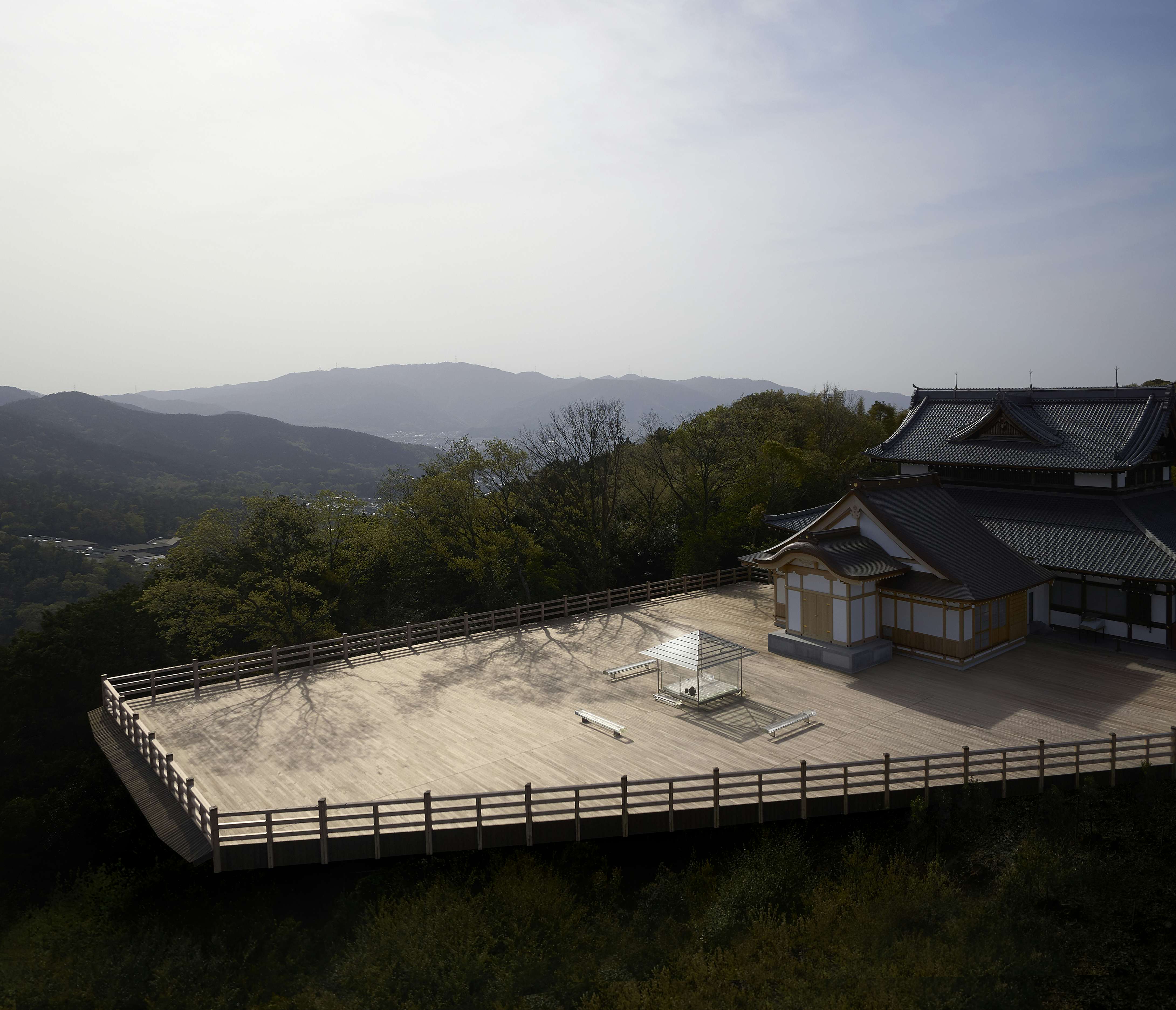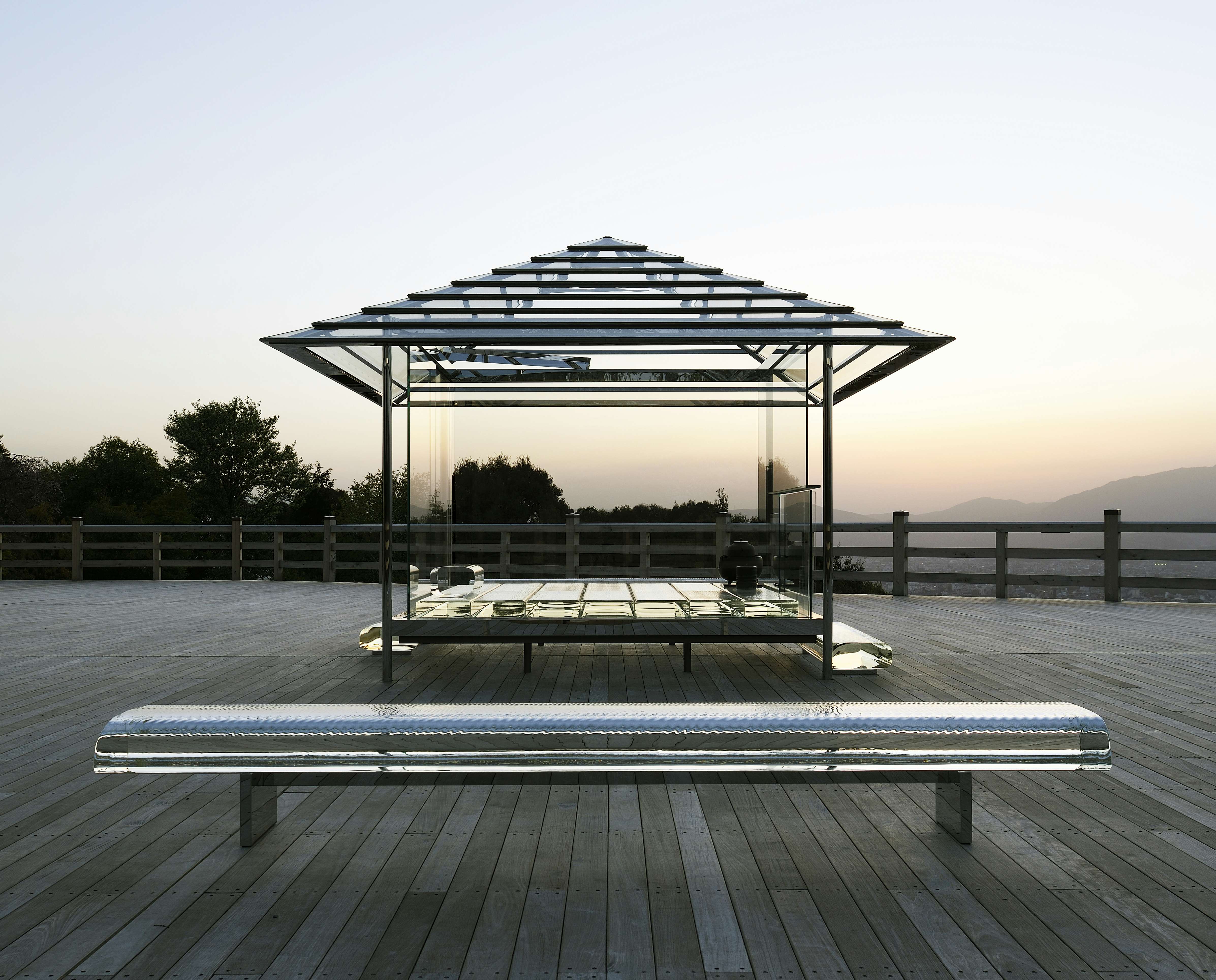 京都の将軍塚青龍殿で展示した《ガラスの茶室 – 光庵》の様子 Photo ©︎Yasutake Kondo