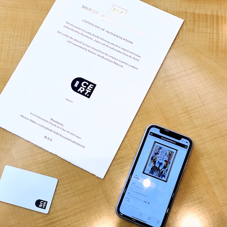 『美術手帖』2018年12月号の「アート×ブロックチェーン」特集で、ブロックチェーン技術によってアート作品のオリジナル性を担保するということを知りました。「マンガアート」のエディションの希少性をどのように担保するのかを考えたとき、ブロックチェーンを導入することで、来歴が記録される意義は大きいと思っています。「マンガアート」は集英社では初めての越境ECとして世界販売もするので、ブロックチェーンで価値や真正性が保証されることの意味はより大きいです。