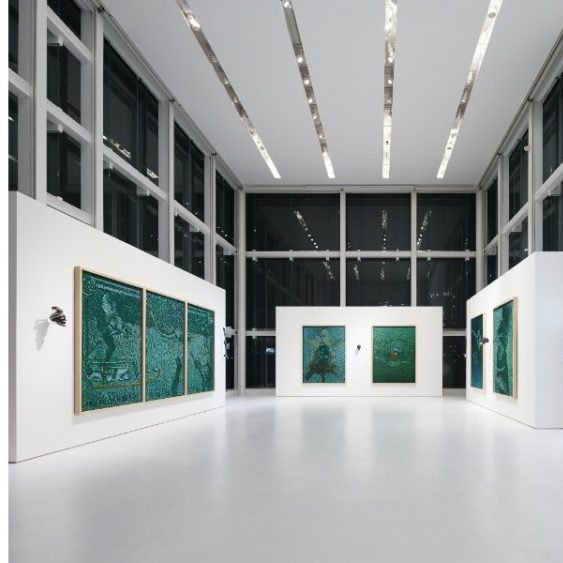 今回、ガラス張りの空間でスカラベ絵画に囲まれて感じたのは、この空間が異なる時間をつなぐ寓意を宿した、歴史的・政治的・文化的な「標本」ではという思いだった。