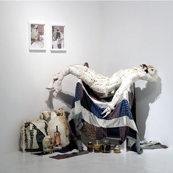 そのきっかけは、今回「六本木クロッシング2016展」に出品している《Thus|Exist-Doll》(2015)。裏に私の背中の写真をプリントしているのですが、それが見えないのはもったいないということで、森美術館の方が鏡を使う展示方法を提案してくださったんです。やってみたら作品がとてもイキイキして見えて、「次のフェーズに行けた!」と感じました。まだまだ勉強中です。