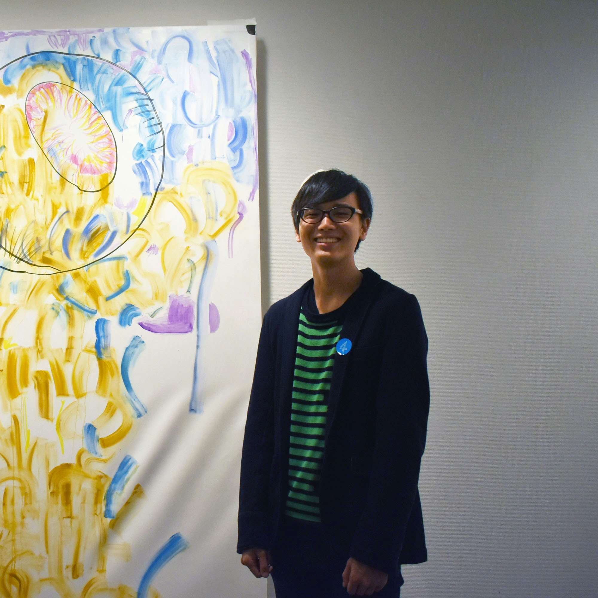 木村の受賞作《けん玉の神さま》は、VR上のペイントソフトで制作したドローイングをベースに、実際のキャンバスに油絵具やマーカーペンなどで描いたもの。重力や質感が存在しないVR空間での制作を、現実世界にいかに落とし込むかに挑んだ。「写真の誕生が絵画のあり方を変えたように、VRでペインティングのあり方を更新したい。これはVRで描いた人の絵だとわかるものをつくりたいんです」と語る。白石は今回の賞について、「ここからなにが出てくるのか興味深く、これからの活動を見てみたい。期待も含めて決めた」と選考理由を話す。