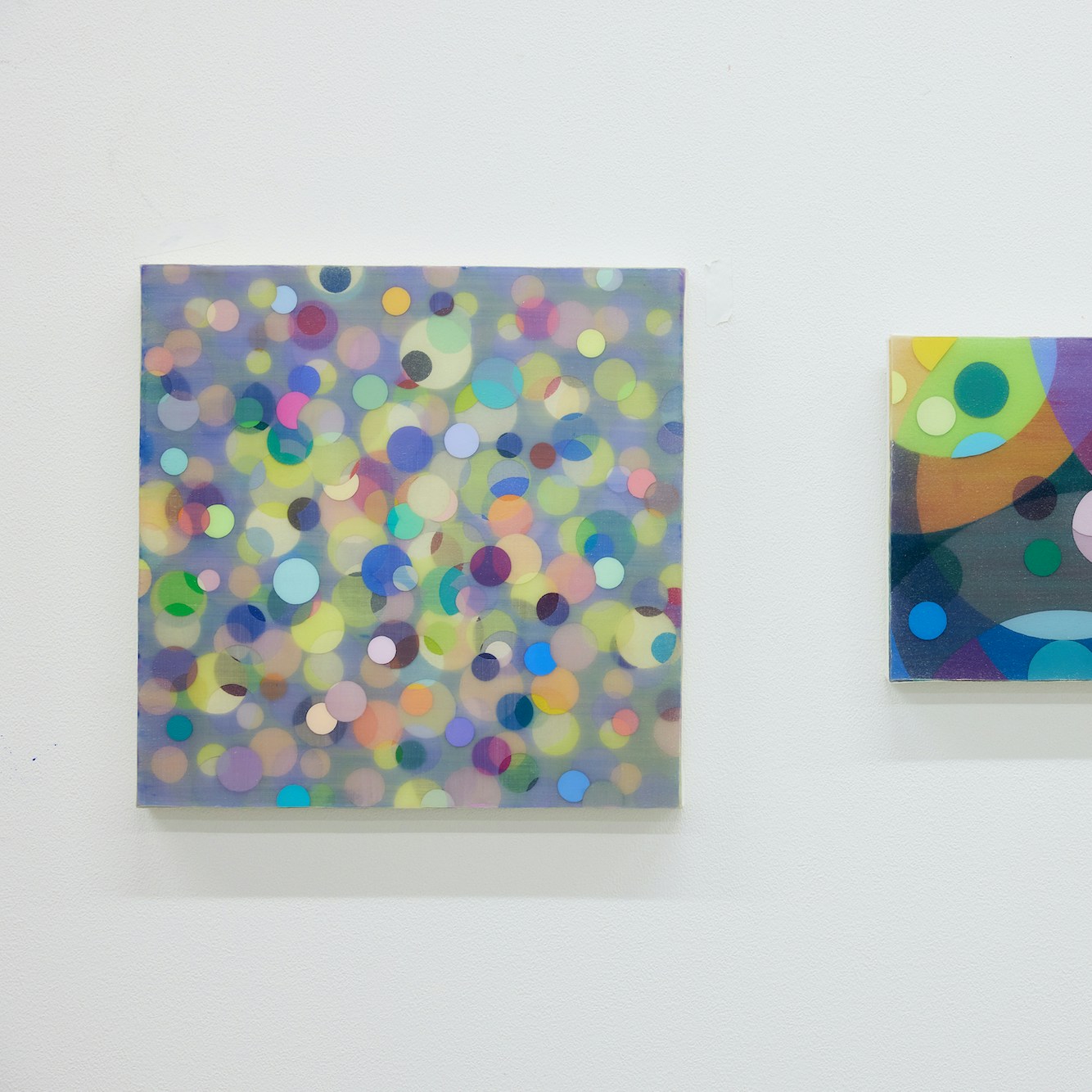 とはいえ、画面が色だけに還元されるところまでいくと、それはそれでしっくりこないし、気を抜くとありきたりなオールオーバーの画面になってしまう。明確な構造への意識が必要でした。探究したかったのは純粋にカタチ同士の相互作用とか、カタチが重なったときの色の見え方とか、何層にも重なったレイヤー同士の共鳴のしかただった。それで描くカタチは、だんだん純粋で歪みのない正円に落ち着いていきました。