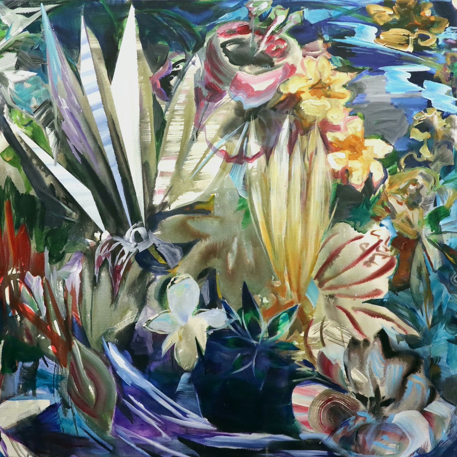 山本 大体いつも褒めてくれるね(笑)。でもよくないときには、客観的な指摘もしてくれるやん。完成したこの作品も、ずっとお互いに途中経過を画像で見せ合っていたもんね。離れながらも、制作中にビデオ電話をつないでいると、アトリエで喋ったり意見を言い合ったりしながら描いていたことを思い出す。