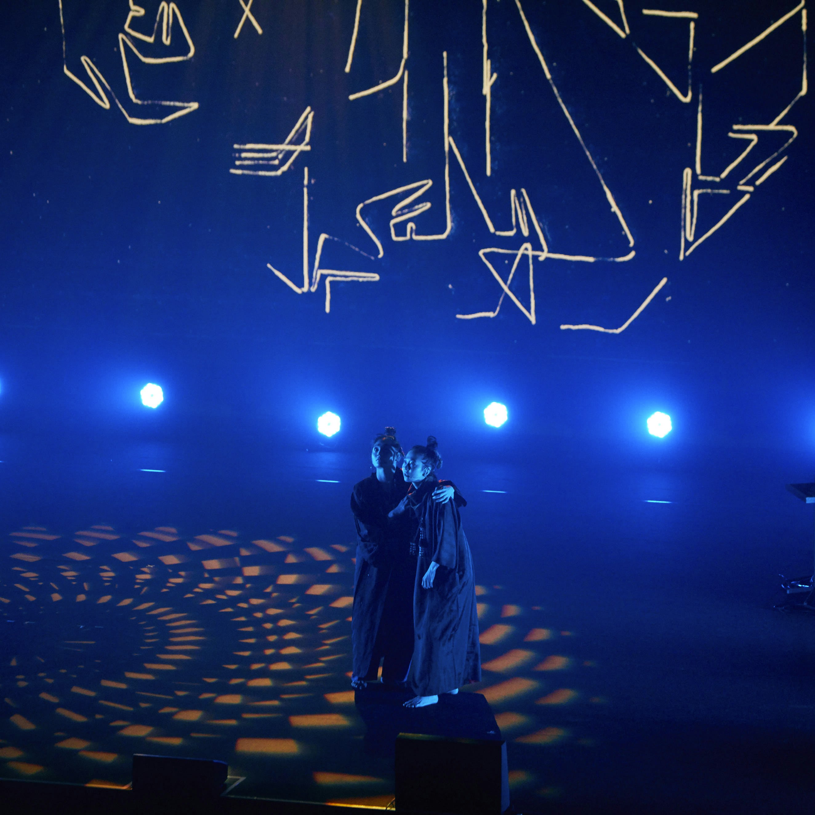 *4──「Reborn-Art Festival 2019」の関連企画として、宮沢賢治の複数作品をベースに、脚本を思想家・中沢新一が、音楽を小林武史が担当しオペラに仕上げた舞台作品。宮沢は詩集『春と修羅』(1924年)の「序」のなかで、「すべてこれらの命題は/心象や時間それ自身の性質として/第四次延長のなかで主張されます」と残しており、「前後・上下・左右」の三次元に「時空(時間)」を加えたものとして「四次元」をとらえている。これらの考えは、理論物理学者のアルベルト・アインシュタインが当時来日したことや相対性理論からヒントを得ているとされており、宮沢が物理学や自然科学などの幅広い分野から宇宙観を構築していたことを推測させる。