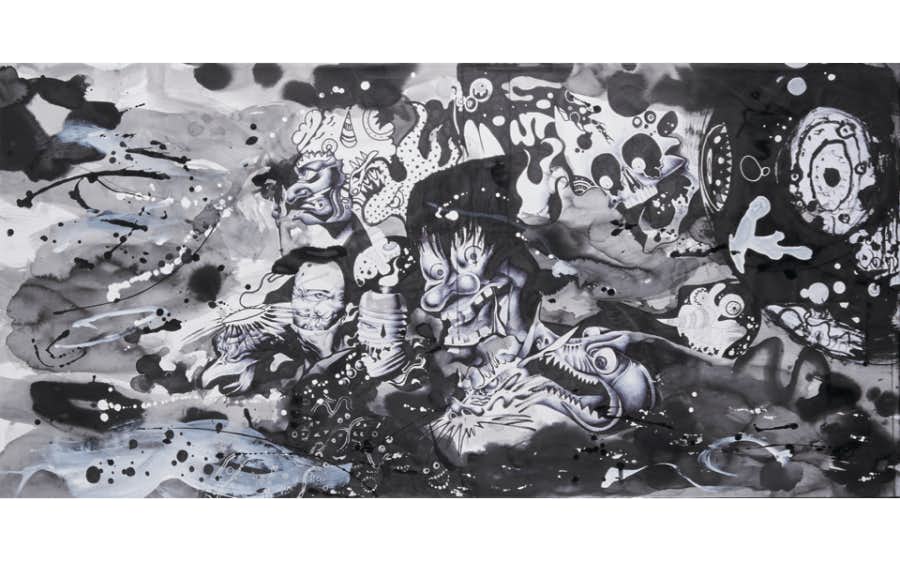 学展大賞受賞作品《百鬼夜行2016》と、作品を描いた水野幸司