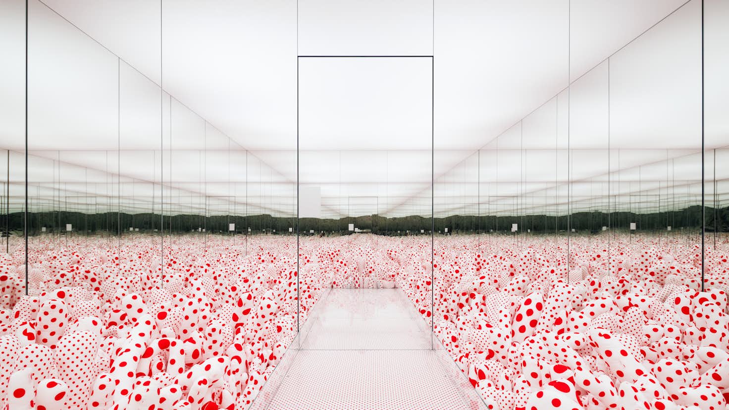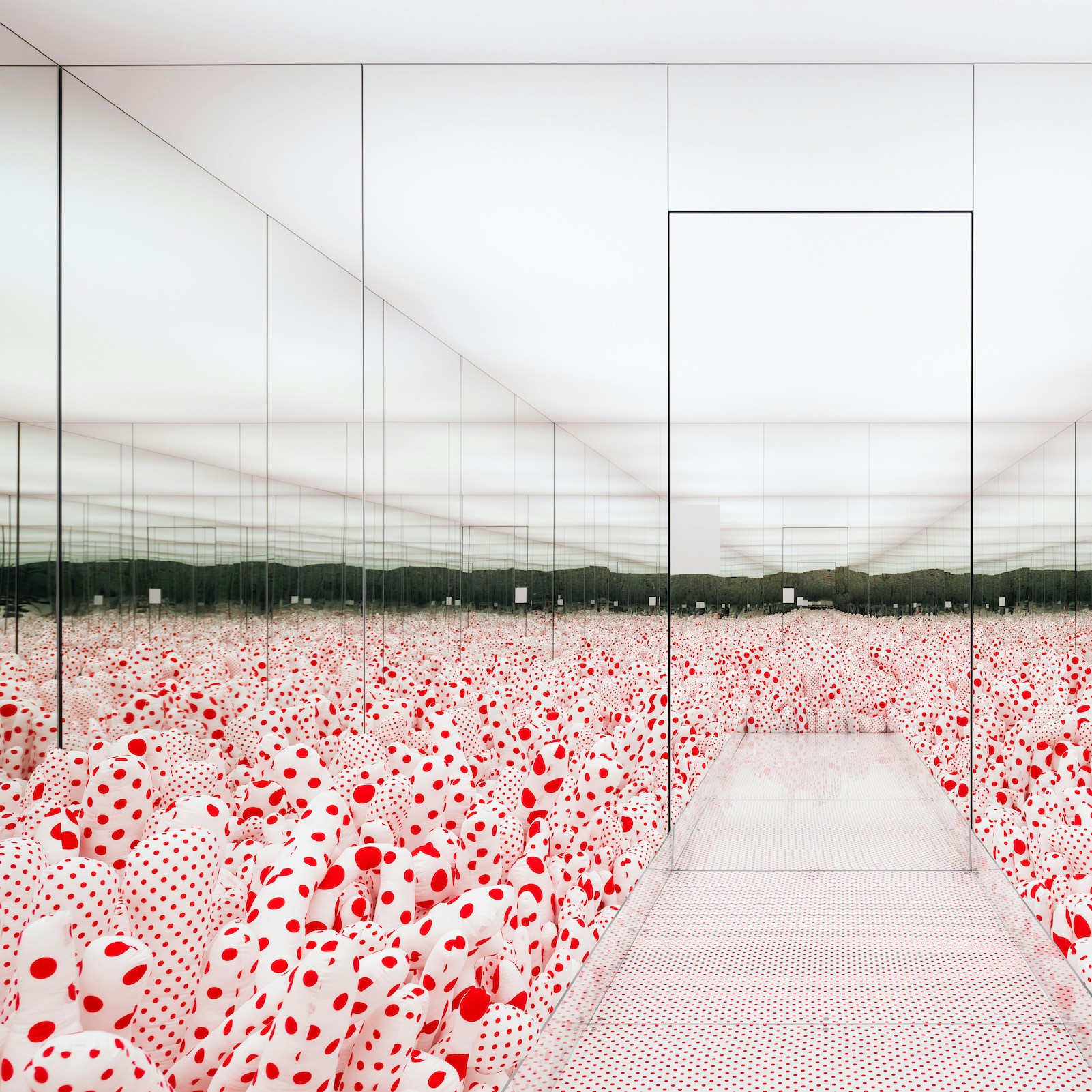 エスパス ルイ・ヴィトンは、パリにある文化複合施設、フォンダシオン ルイ・ヴィトンの近現代アートコレクションを紹介する場として、世界6ヶ所に設けられている。大阪・心斎橋のエスパス ルイ・ヴィトン大阪で開催されている草間彌生「INFINITY - SELECTED WORKS FROM THE COLLECTION」は、同グループのコレクションから厳選した草間彌生作品で構成されている。会場には絵画8点、インスタレーション1点とインタビュー映像が並んだ。