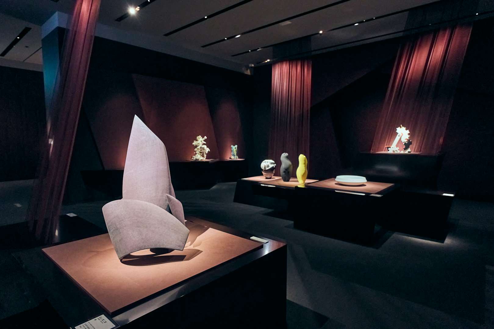 菊池寛実記念 智美術館では現在、受賞作品を含むすべての入選作が展示されている。会場へ足を踏み入れると、まず目に飛び込んでくるのが、大賞を受賞した中根楽《境界の思考》だ。静けさと確かな質量感を湛えるこの作品は、器のようでもあり、オブジェのようにも見える。まさに事物の境界線を漂っているかのような佇まいだ。