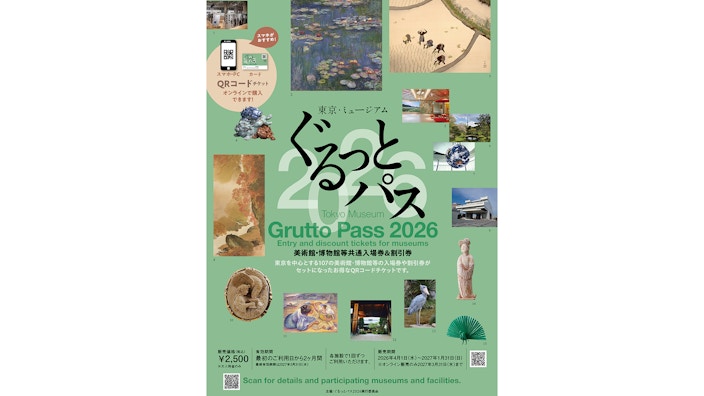 東京を中⼼とする107の美術館・博物館等の⼊場券や割引券がセットになった1部2500円の⽂化施設周遊チケット「東京・ミュージアム ぐるっとパス2026」が、4月1日に発売される。