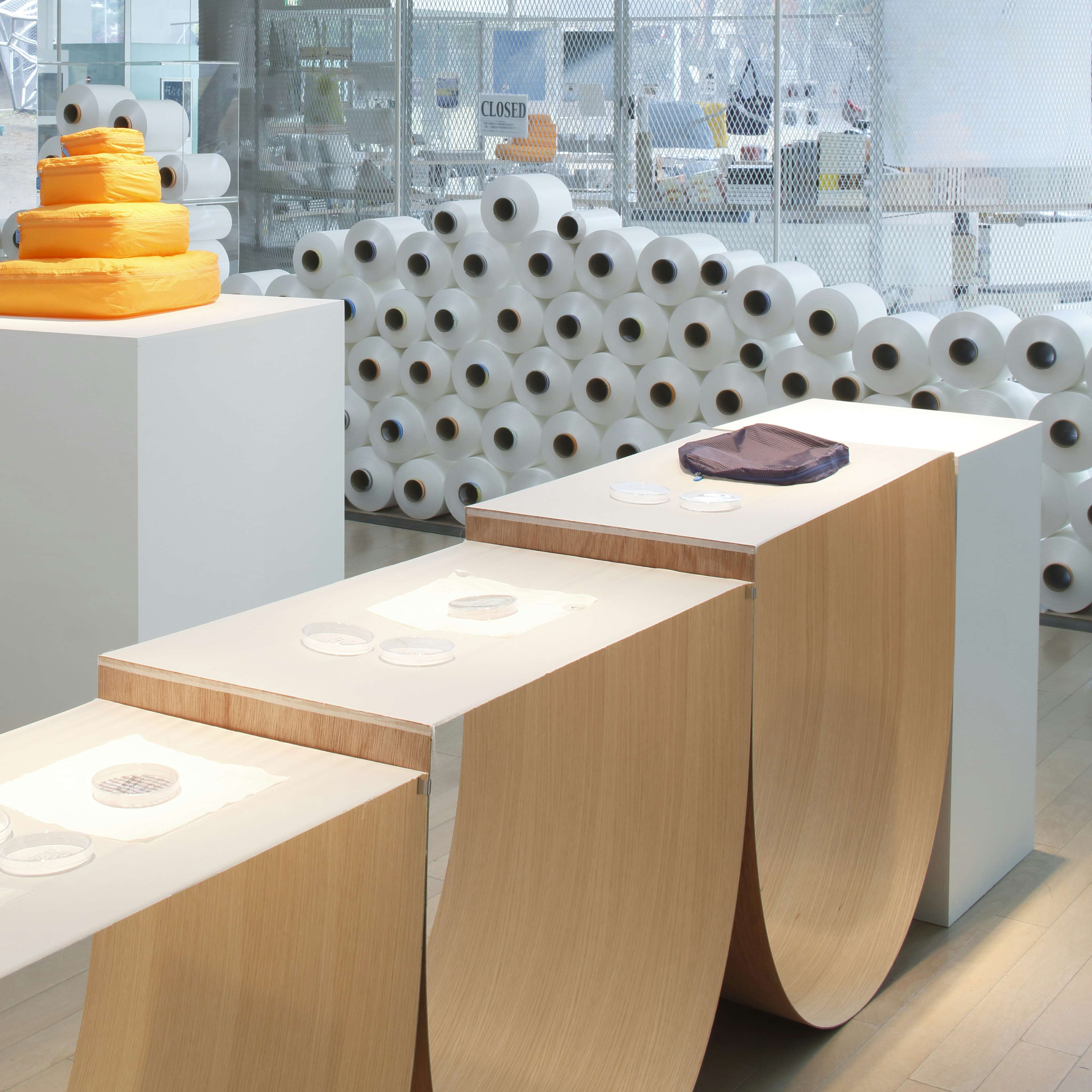 「TO&FRO」はこの生地を使ったオーガナイザーなどを扱う自社ブランドで、2014年より展開している。本展ではその製品のほか、様々な布のサンプルを展示する。