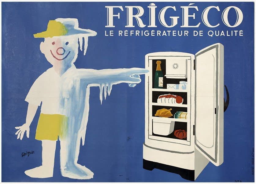 レイモン・サヴィニャック フリジェコ:良質の冷蔵庫 1959 ポスター、カラーリトグラフ 120×160cm パリ市フォルネー図書館所蔵 © Annie Charpentier 2018