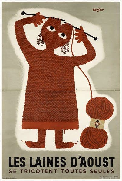 レイモン・サヴィニャック ひとりでに編める ウット毛糸 1949/51 ポスター、カラーリトグラフ 240×159cm パリ市フォルネー図書館所蔵 © Annie Charpentier 2018