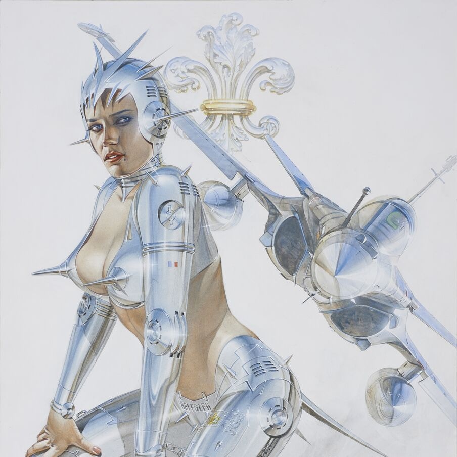 空山基は1947年生まれ。69年に中央美術学園を卒業し、その後広告代理店勤務を経て72年にフリーランスに転身。エアブラシを駆使した「写実表現技法のゴッドファーザー」として知られる空山の活動は、日本のコマーシャルアートの枠を超え、ハリウッド映画からファインアートまで多岐にわたる。