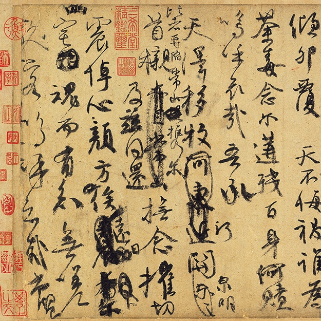 本展で日本初公開となる顔真卿の《祭姪文稿(さいてつぶんこう)》(758)は、安史の乱の際に、従兄とその末子を失った凄惨な思いを綴ったもの。情感を発露する書風は高く評価され、王羲之の最高傑作と名高い《蘭亭序》(353)に比肩すると言われる。