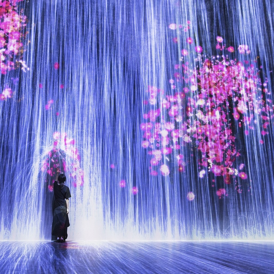 追加されるのは、平面化された滝の上に人が立つと、その人自身が障害物となり水の流れが変化していく《憑依する滝》をはじめ、1時間を通して1年間の花々が咲いては散り変化していく《花と人、 コントロールできないけれども、 共に生きる》など。作品と空間、そして鑑賞者が干渉しあうインタラクティブな作品が登場する。