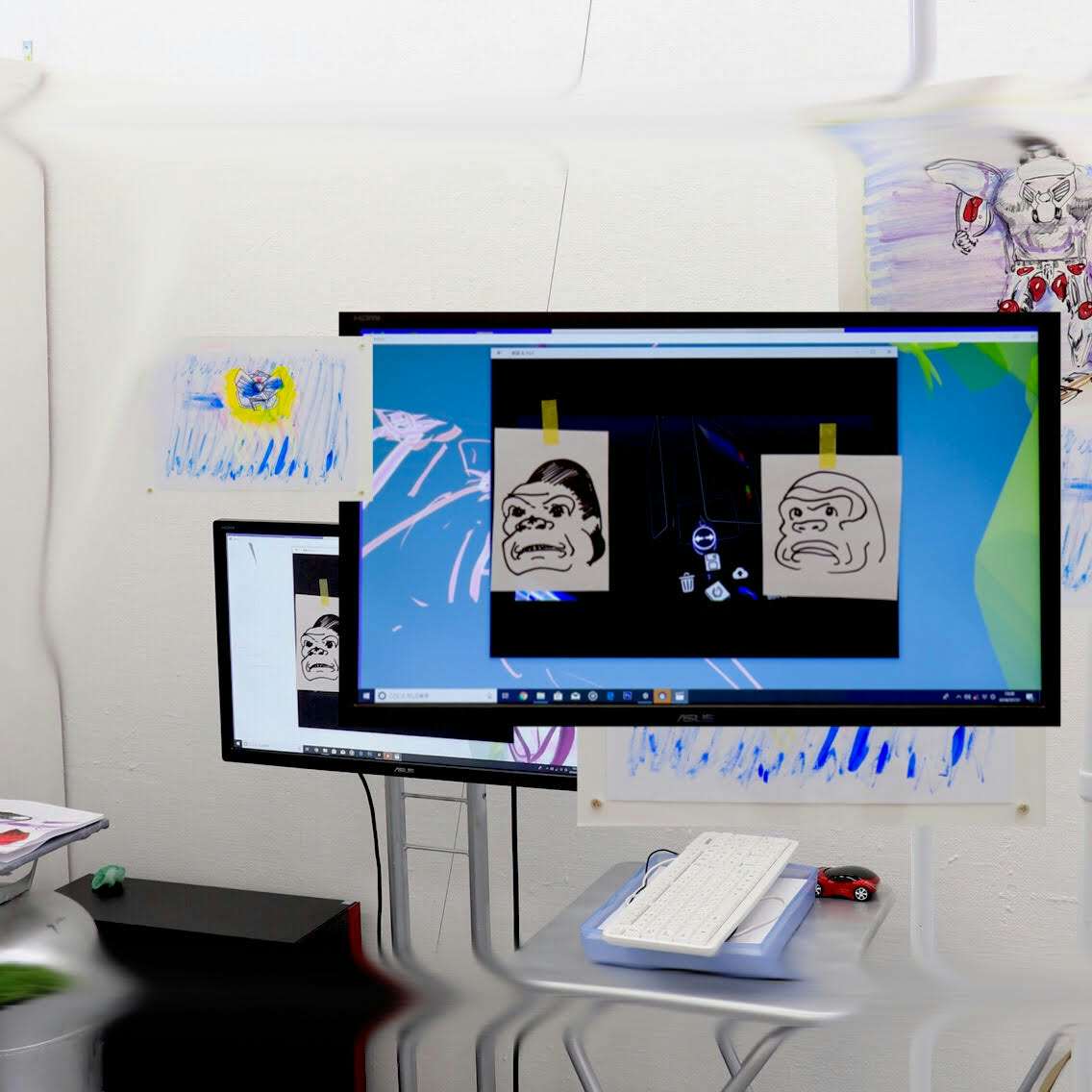 現在、京都を拠点に活動する木村にとって関東初個展となる本展では、木村はデジタル技術をとりまく環境の変化を語るうえで欠かせない2つのテレビアニメに言及し、VRを用いた新作のインスタレーションと絵画作品群を発表。デジタル空間上で描かれ発表される絵画作品と、現実空間に基づきつくられ、展示された絵画作品に注目したい。