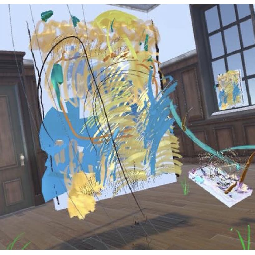 「CAF賞2017」では、デジタル技術の登場によって新たに培われた感覚に基づき、質感や重力といった絵画の特性をそぎ落としたキャンバス作品や、ドローイング帳とその中の絵を映し出すタブレットを並置する作品を展示。「VRでペインティングのあり方を更新したい」と語っていた。