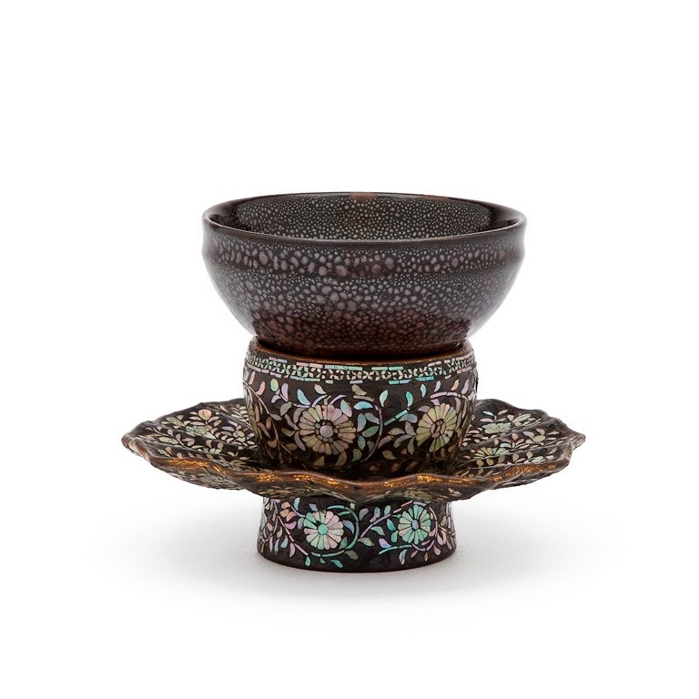 茶碗=南宋時代(12〜13世紀) 天目台=琉球(16〜17世紀) 重要文化財 大徳寺龍光院蔵 ※全期間展示