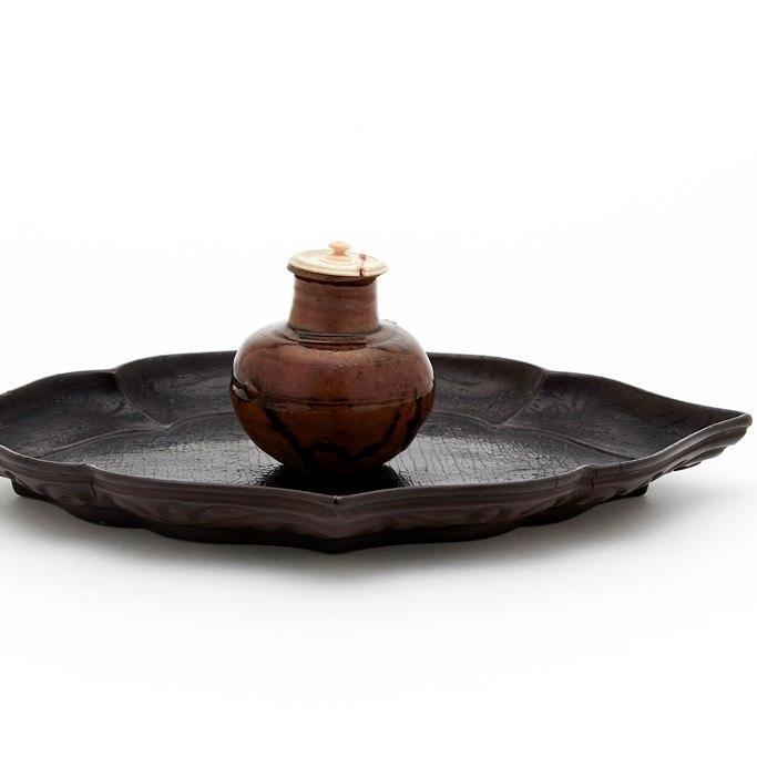 唐物丸壺茶入(宗及丸壺) 附 菱形内黒外屈輪文盆 南宋時代(12〜13世紀) 津田宗及・江月宗玩所持