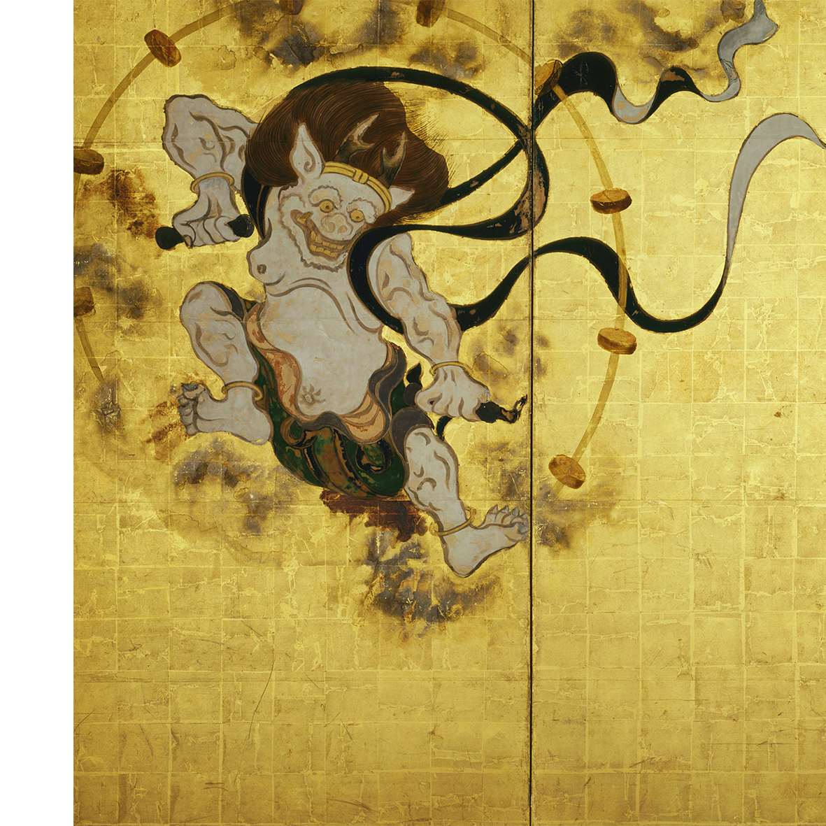 本展では、寄託品の数々を陶磁、考古、肖像画、仏画、中世絵画、近世絵画、彫刻、中国絵画、染色、金工、漆工に分類して展示。なかでも注目したいのは《伝源頼朝像》(京都・神護寺)や、俵屋宗達筆《風神雷神図屏風》(京都・建仁寺)。教科書でお馴染みの作品を間近で見る、またとない機会となっている。
